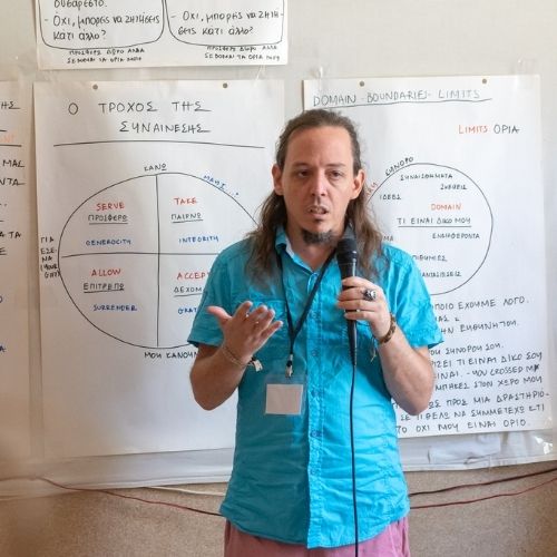 Χωρίς ιεραρχίες, χωρίς συμβουλές και χωρίς κριτική. Εξασκούμαστε στη συνειδητή ακρόαση, στην ειλικρίνεια και στη μη-βίαιη επικοινωνία.